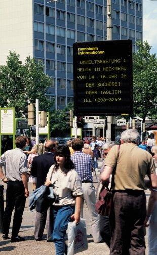 A JCDecaux inventa o Quadro Eletrônico de Informações. As cidades agora podem comunicar suas mensagens em tempo real aos cidadãos, 24 horas por dia, 7 dias por semana.