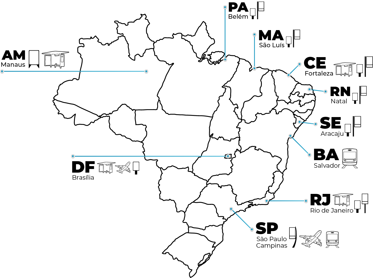 Brasília, Curitiba, Belo Horizonte, Porto Alegre, Fortaleza